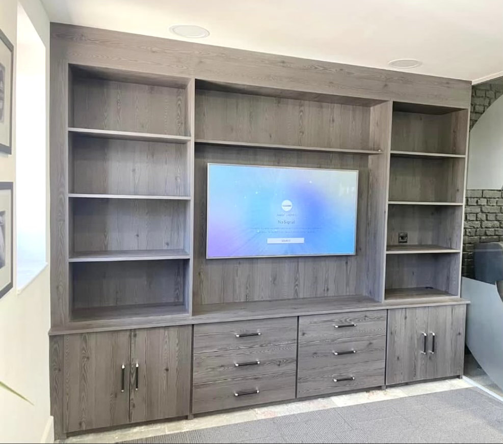Here at Bartlams Fitted Bedrooms we offer a wide range of fitted bespoke TV Units in many colours and designs. Call today and ask for a quotation on your very own personal home cinema.